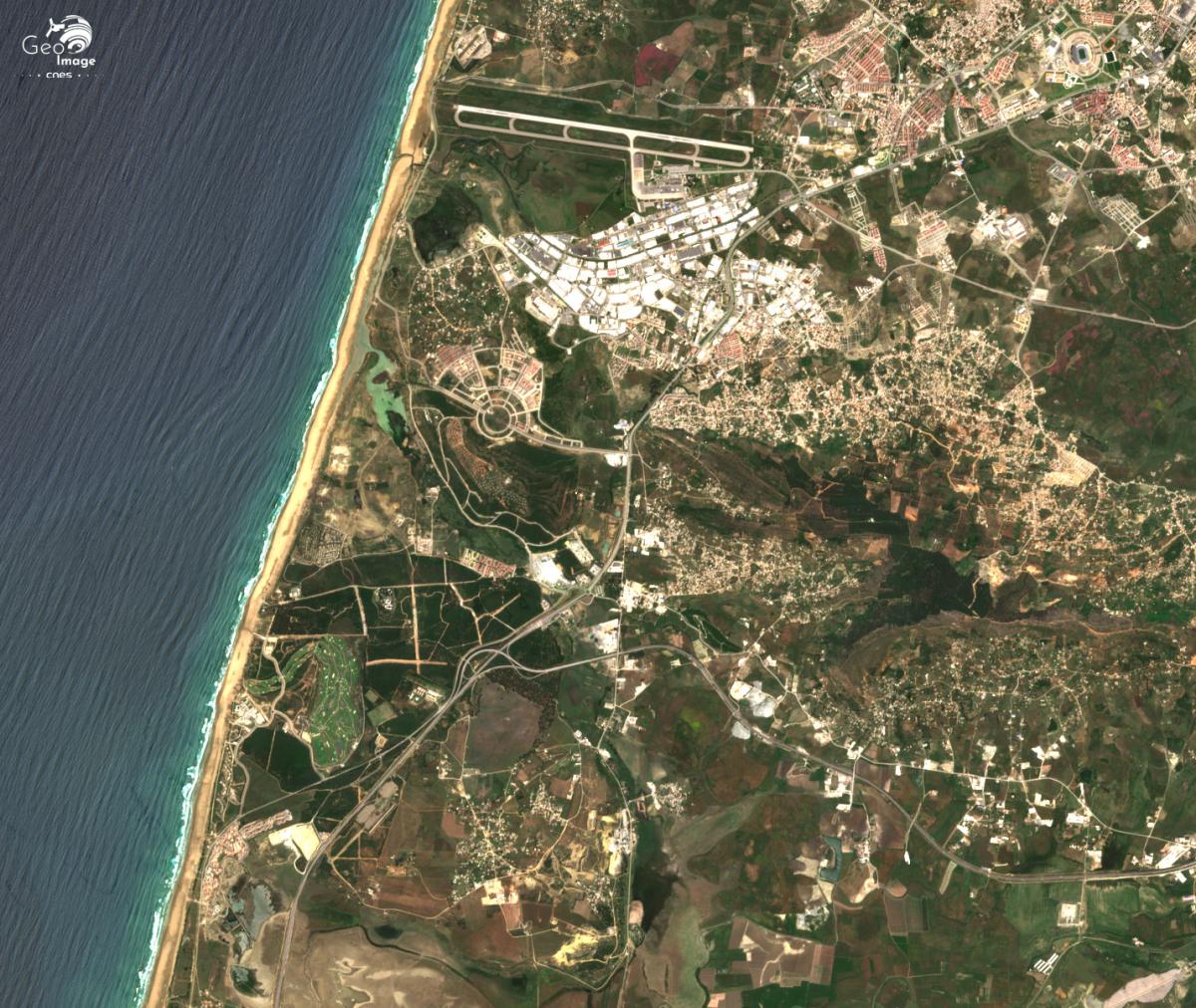 L'image présentée ci-dessous a été prise par un satellite Pléiades le 8 octobre 2020. Il s’agit d’images en couleurs naturelles, de résolution native à 0,70m, ré-échantillonnée à 0,5m :