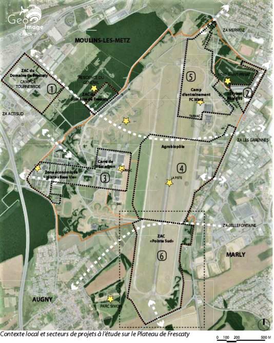Mais l’aménagement du secteur de la Pointe sud est sans doute celui qui revêt le plus grand enjeu économique, logistique et urbanistique. Ce secteur doit devenir une nouvelle zone d’activité économique permettant d’amplifier la dynamique de requalification de l’ensemble du Plateau à l’échelle de la métropole, en reconnectant notamment des secteurs habités qui aujourd’hui s’ignorent, par l’intégration dans le nouveau maillage de cheminements/ modes doux ( vélos, piétons), d’une desserte locale optimisée entre Augny, Marly , et l’ensemble du Plateau de Frescaty.