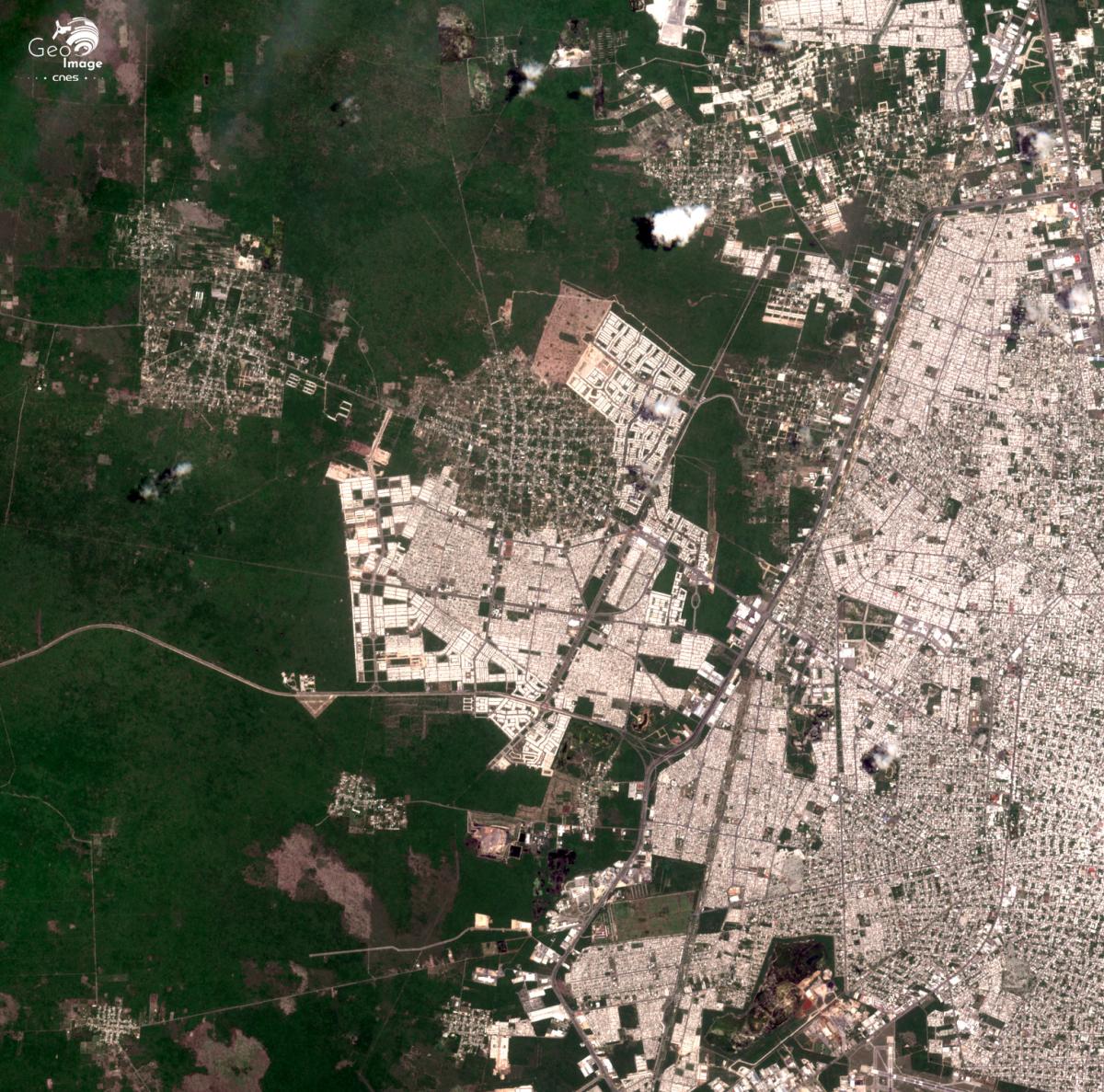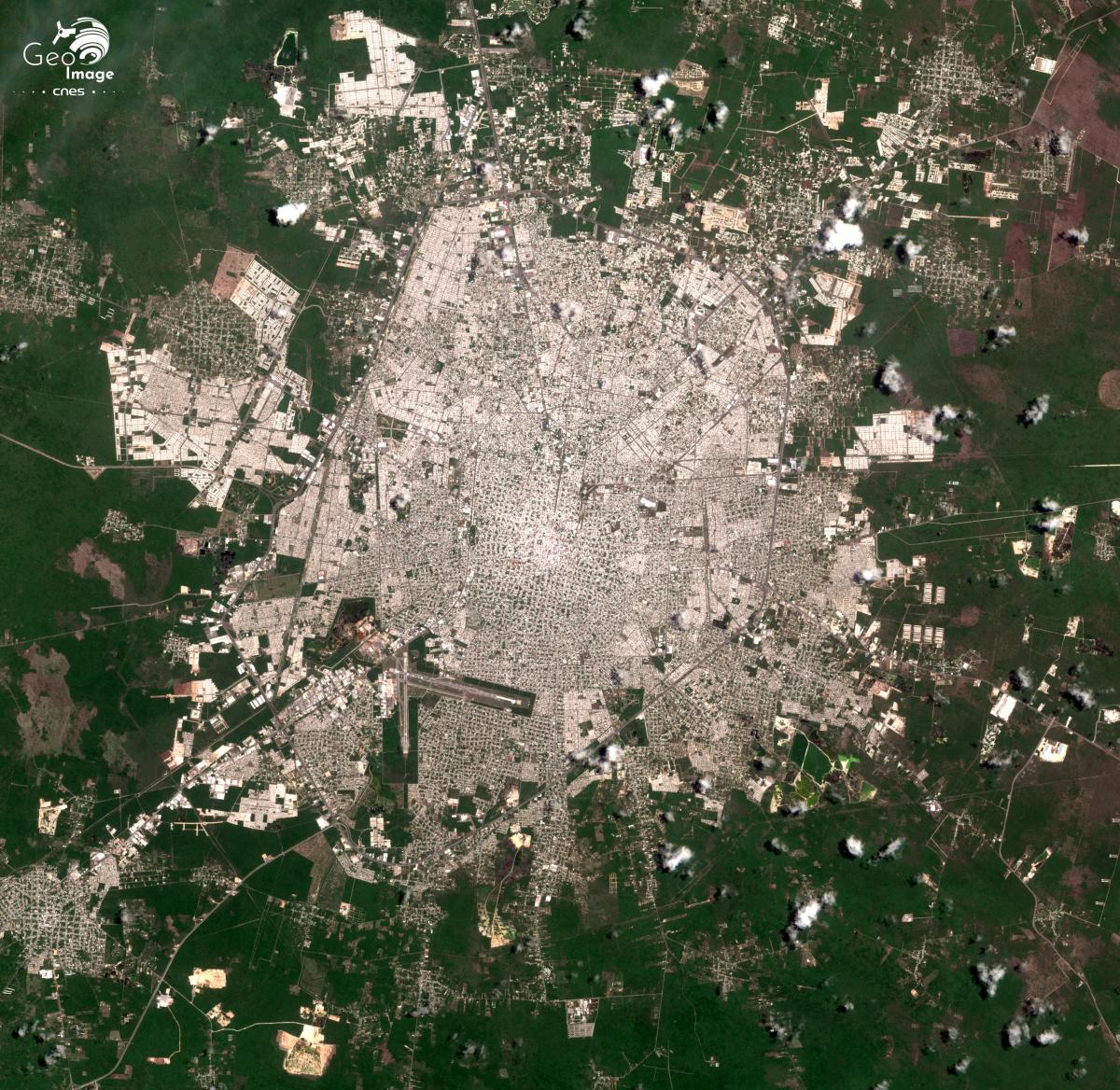 Esta imagen de la ciudad de Mérida en Yucatán, México, fue tomada por el satélite Sentinel-2B el 29 de mayo de 2021. Se trata de una imagen en color natural y la resolución es de 10 m.