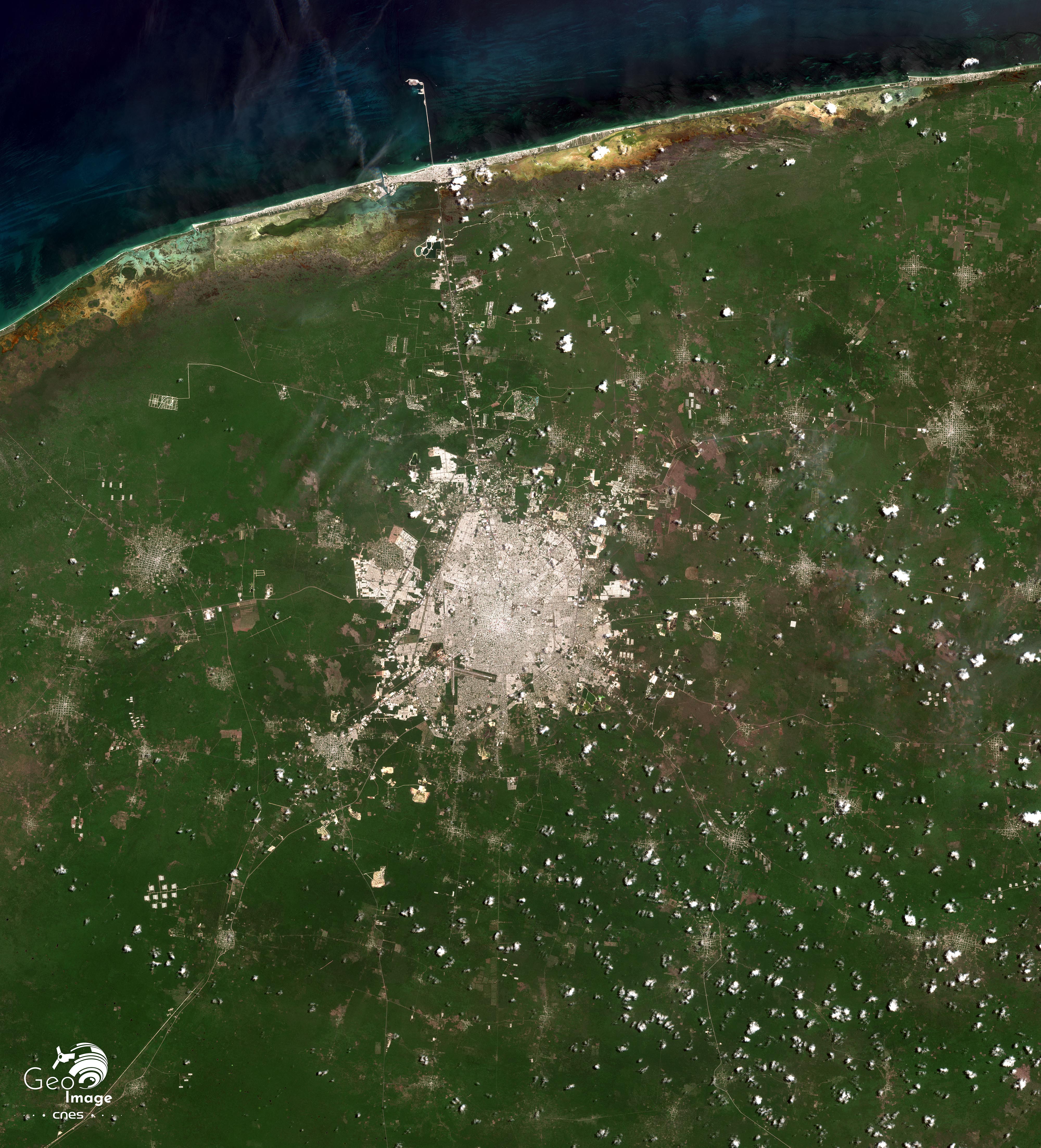 Cette image de la ville de Mérida du Yucatan au Mexique a été prise par le satellite Sentinel-2B le 29 mai 2021. Il s'agit d'une image en couleur naturelle et la résolution est de 10m.