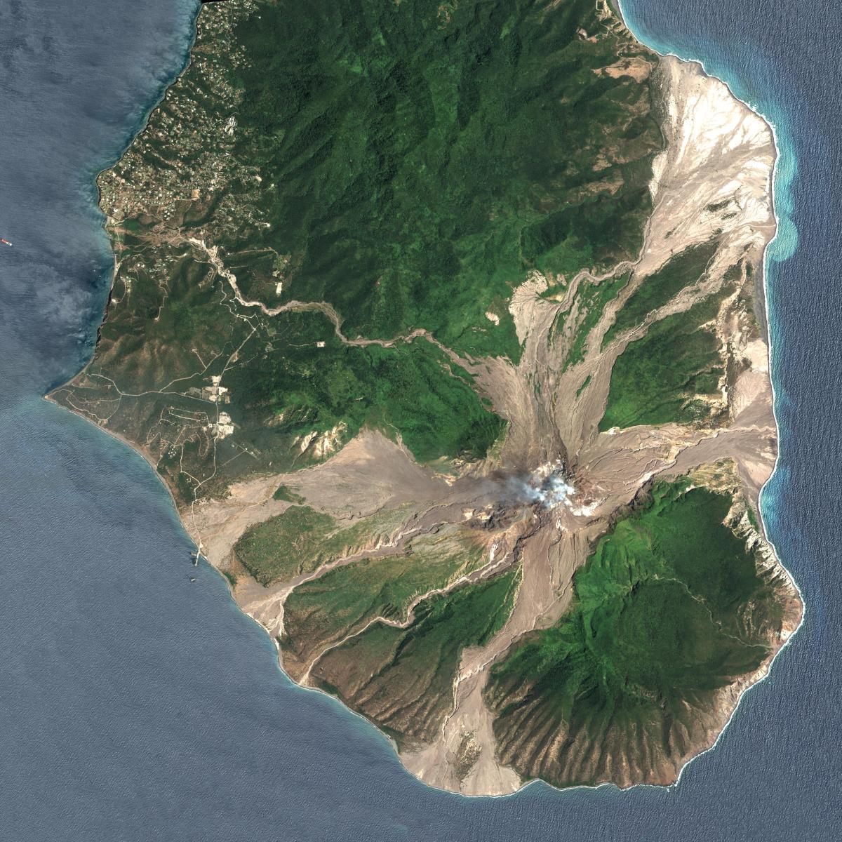 Cette image Montserrat située dans l'arc formé par les Petites Antilles a été prise par le satellite Sentinel-2B le 21 avril 2020. Il s’agit d’une image en couleurs naturelles de résolution native à 10m.