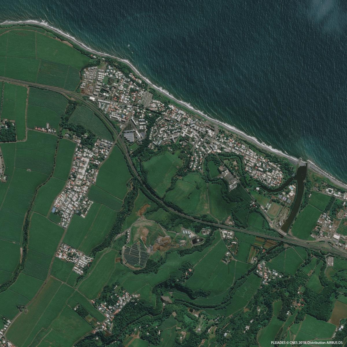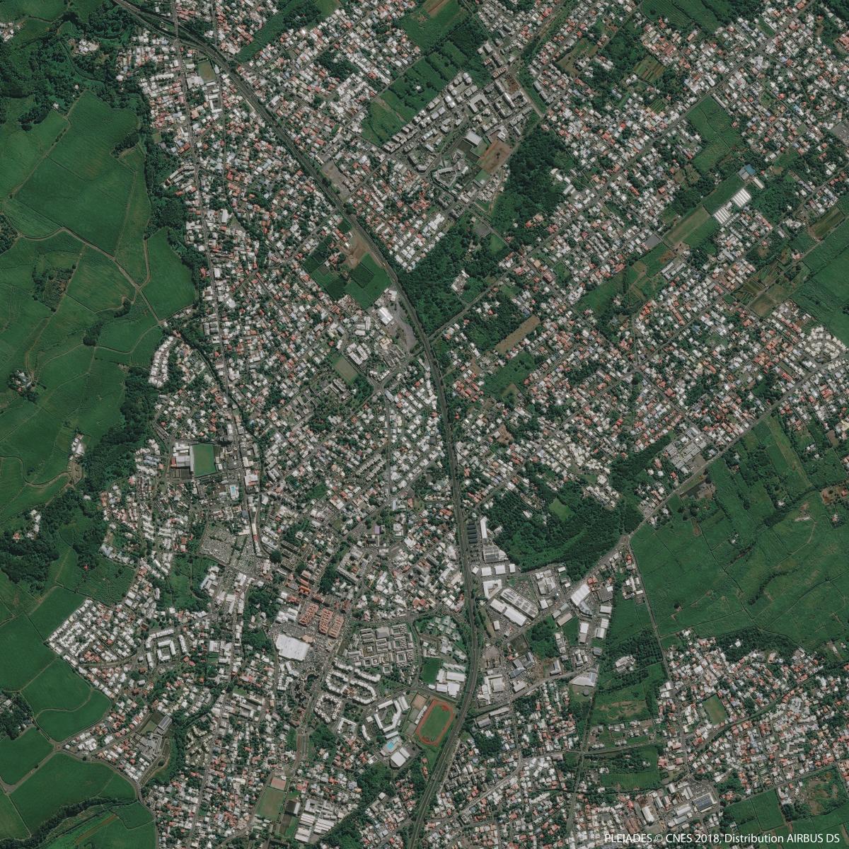 Cette dynamique a accentué le phénomène de périurbanisation, mis en évidence sur l’image satellite. A partir des vieux centres, mais aussi des nombreux écarts, l’essaimage pavillonnaire (la « kaz a ter ») a grignoté, comme partout ailleurs, la surface agricole utile, et notamment les champs de canne. La pression est particulièrement élevée sur la commune de St André dont la densité atteint 1 100 habitants au km2.