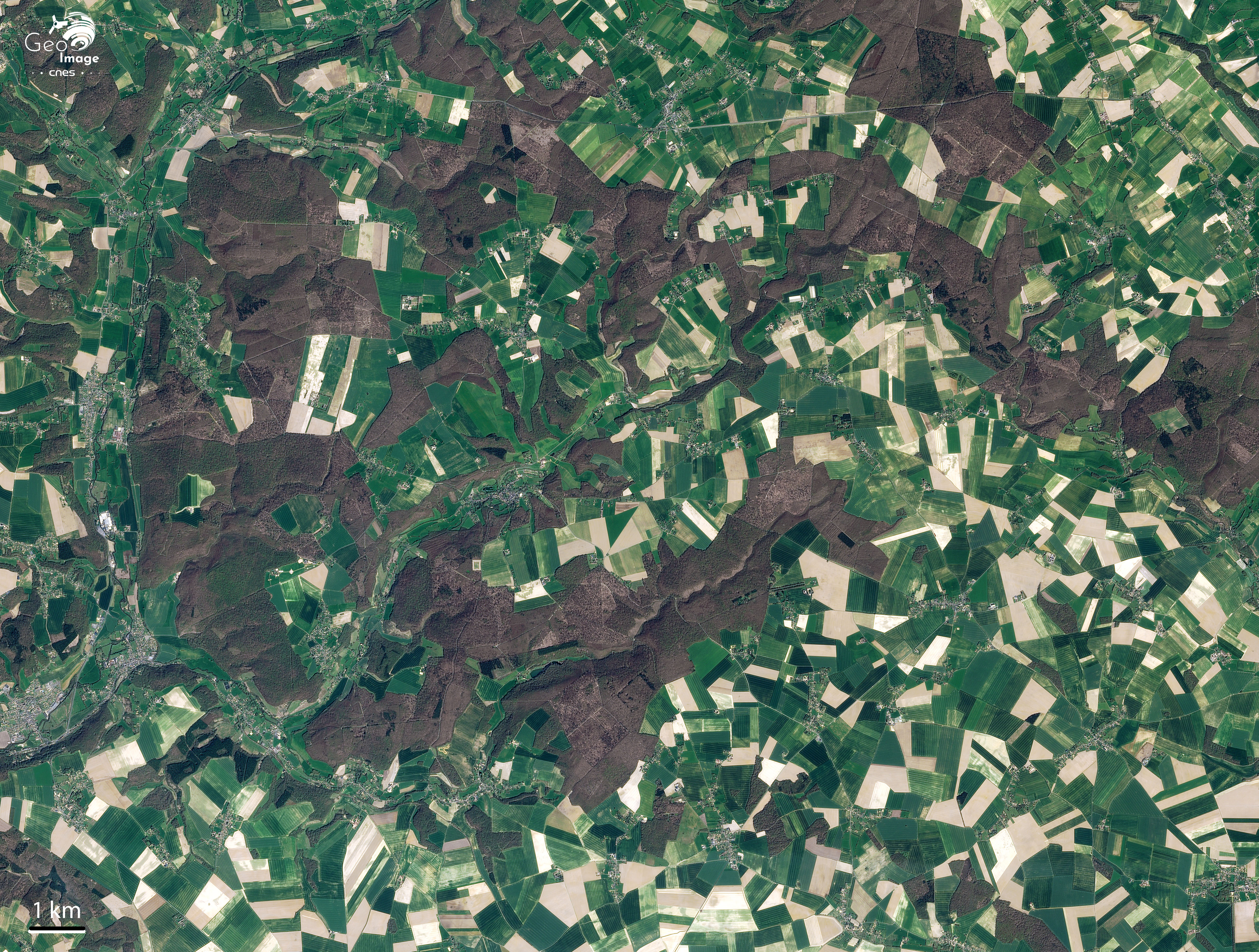 Située dans le département de l'Eure, en région Normandie, cette image de Lyons-la-Forêt a été réalisée par le satellite SPOT 6 le 5 décembre 2019. Il s’agit d’une image en couleurs naturelles de résolution à 1,5 m.