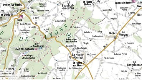 - Document 3 : Carte IGN, Forêt de Lyons, détail redimensionné, extrait du site Geoportail