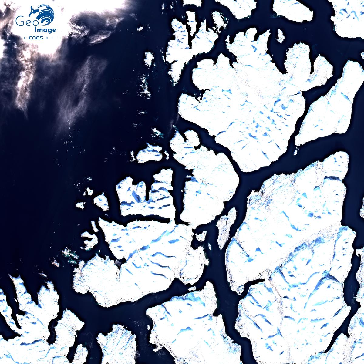 L’image nous montre une petite île au milieu d’un fjord protégée de la mer de Norvège par une succession d’îles de taille beaucoup plus importante qui se découpent en direction de l’ouest. L’île est entourée de montagnes qui sont encore couvertes de neige alors que l’image a été prise au plus fort de l’été, au mois de juillet. En direction de la mer, cette côte à fjord, terme désignant une ancienne vallée glaciaire envahie par la mer, est très découpées par un vaste semi de vallées très encaissées. Le tout aboutit à un vaste pavage d’îles de taille très différentes, mais souvent considérables, notamment l’île de Kvaløya, à l’ouest de l’île de Tromsøya où se situe la ville de Tromsø.