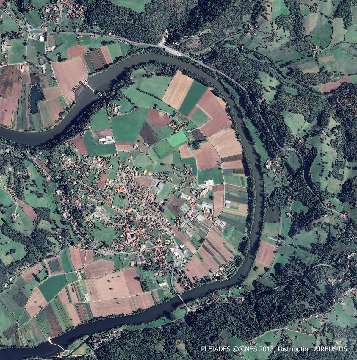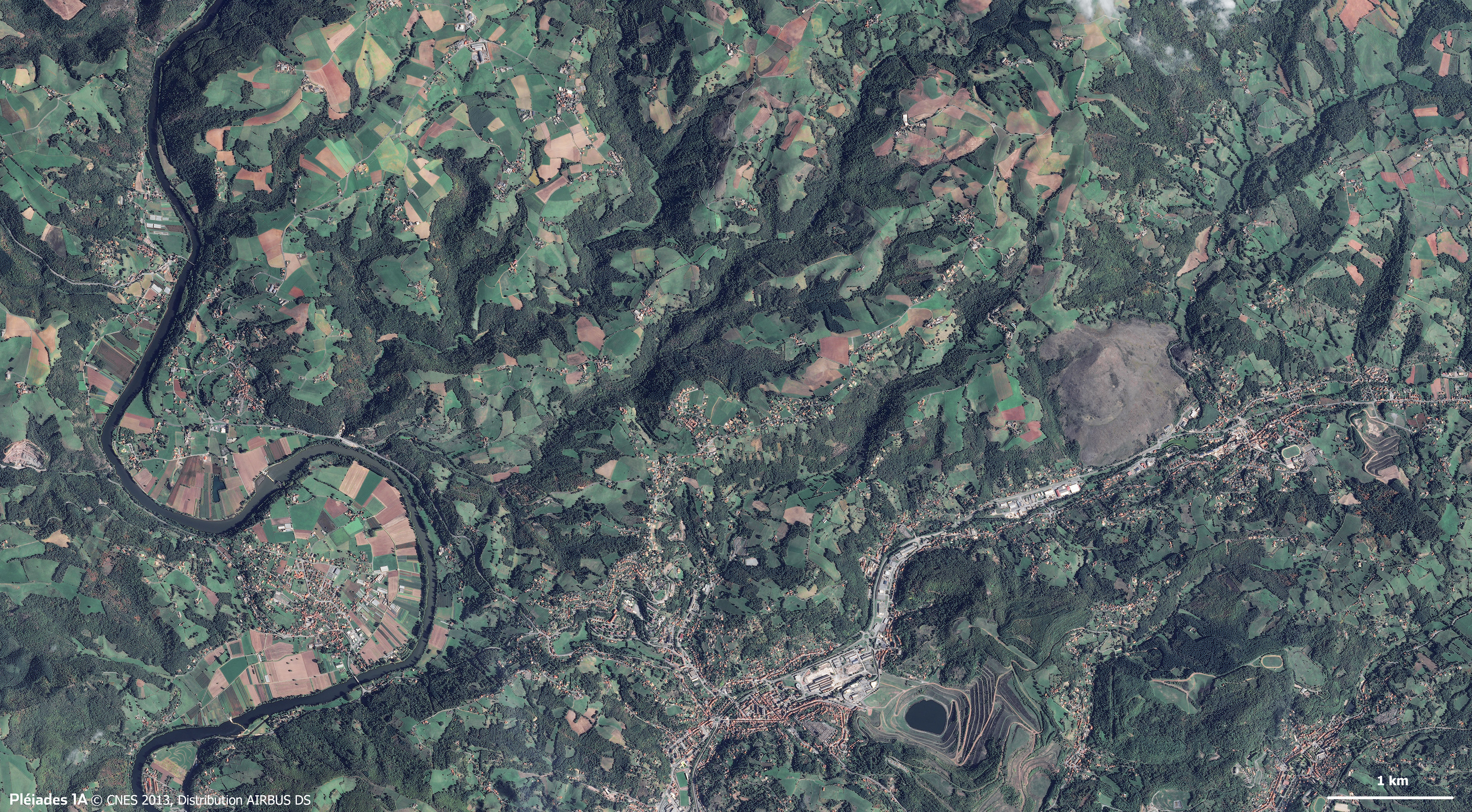 Ce cliché a été pris par le satellite Pléiades 1A, le 13 octobre 2012. La résolution de l’image est de 0.70 m par pixel, ramenée après ré-échantillonnage à 0.50 m. Le cliché est en couleurs naturelles et recouvre un territoire de 12.5 km sur 6.75 km de côté. Le Nord géographique est dans le prolongement de la diagonale qui part du coin inférieur droit de l’image pour aller vers le coin supérieur gauche.