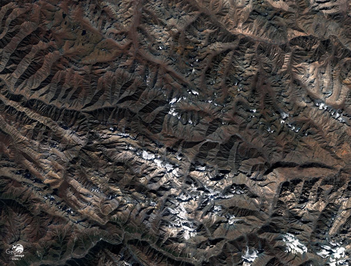 Cette image de la région de Kargil, dans l'Himalaya, a été prise le 19 octobre 2020 par un satellite Sentinel-2. Il s’agit d’une image en couleurs naturelles de résolution native à 10m.