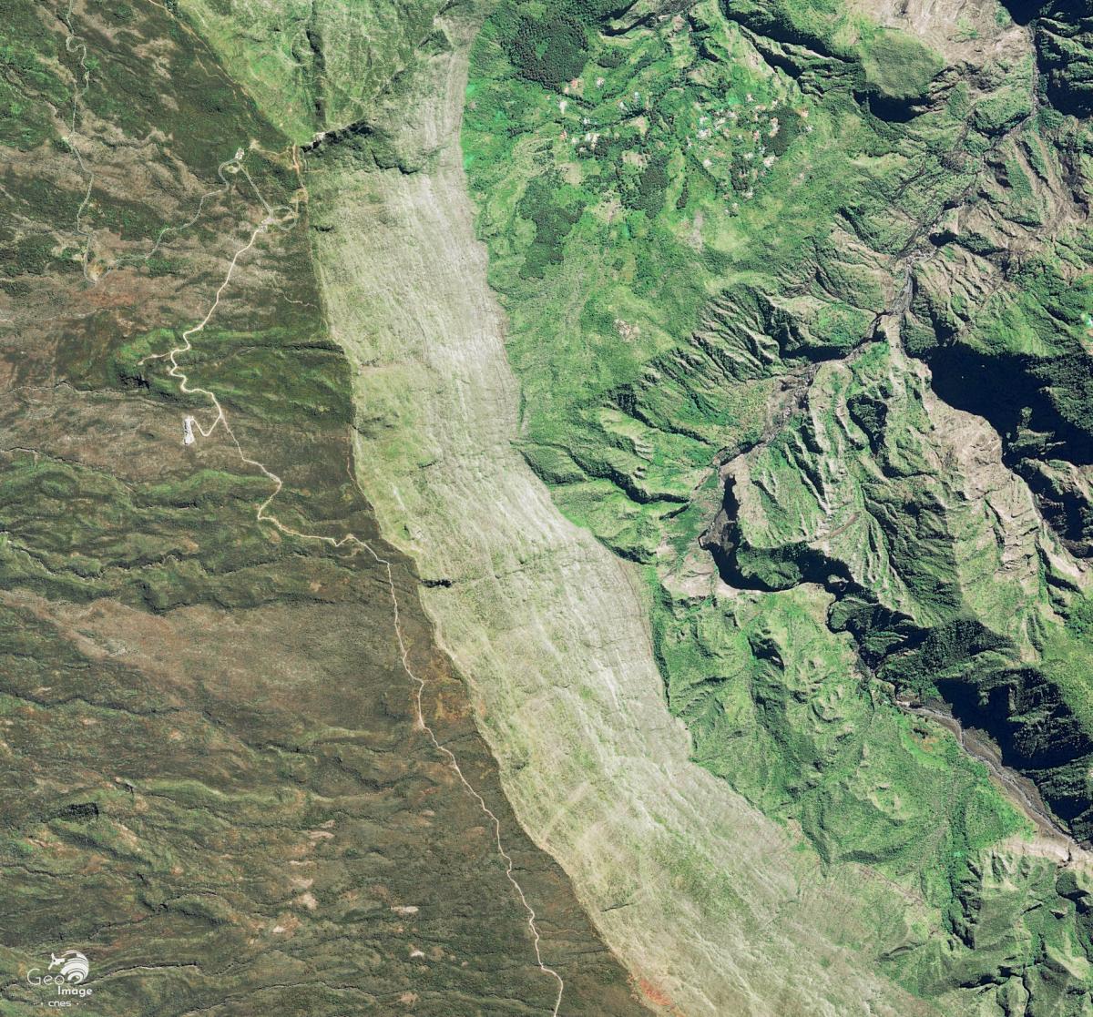 On peine aujourd’hui à imaginer que des milliers d’individus aient pu atteindre et franchir ces obstacles. Peut-être ont-ils remonté le Bras de Cilaos, ainsi que le laissent penser les petits hameaux encore installés de part et d’autre de la rivière (Le Petit Serré visible sur le zoom n°1).