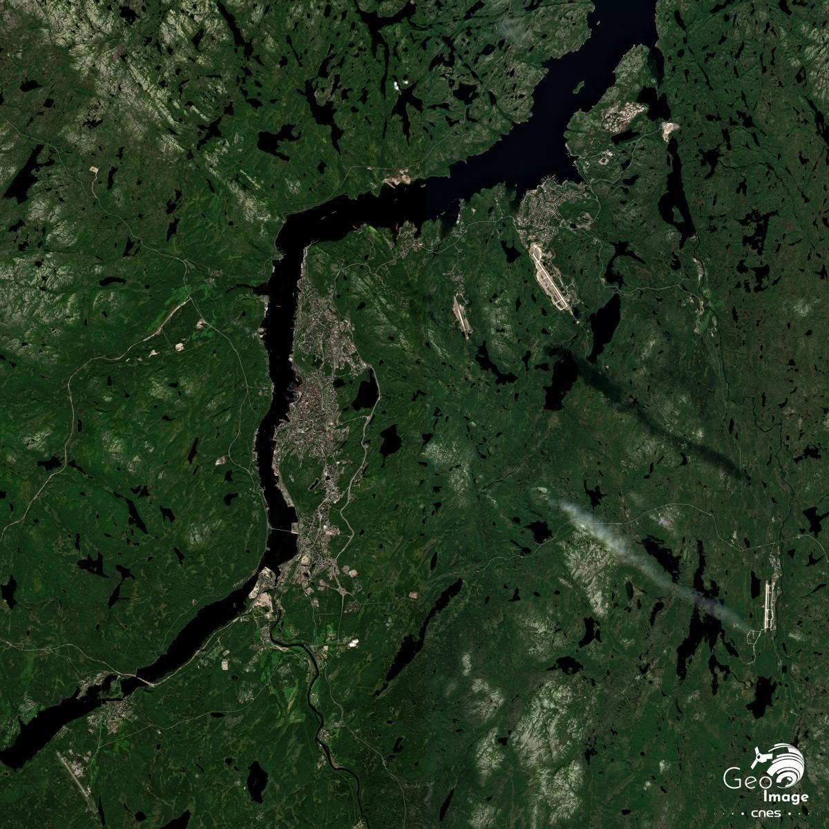 À plus de 1 300 km au nord de Saint-Pétersbourg sur le 68°58 degrés de latitude Nord, Mourmansk est la plus grande ville au monde située au nord du cercle polaire Arctique. Comme le montre l’image, nous sommes ici aux limites entre la taïga (forêt boréale) au sud, dont il ne reste que des lambeaux, et la toundra au nord.