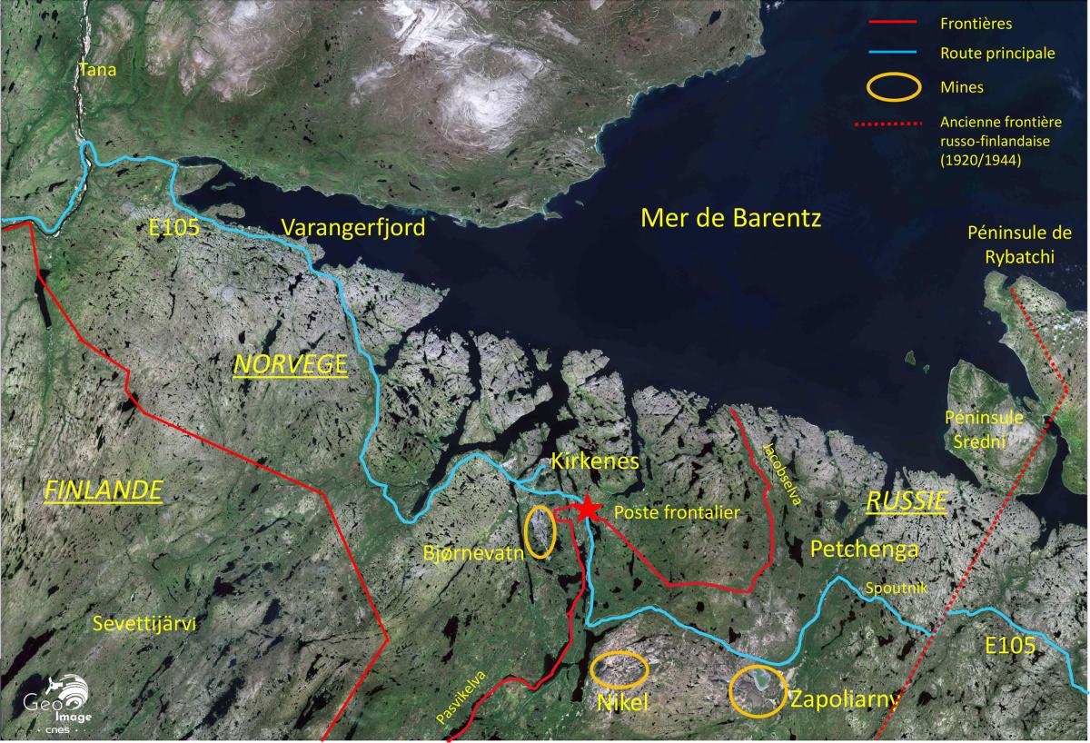 Nous sommes dans le Grand Nord arctique sur la Mer de Barentz entre les péninsules de Varanger à l’ouest et de Kola à l’est. Dans cet espace désertique occupé traditionnellement par les Sames, les cités minières forment depuis le début du XXe siècle trois isolats. Cette marge est au carrefour de trois frontières entre la Russie, la Finlande, membre de l’Union européenne, et la Norvège, membre de l’OTAN. Dans cette région historiquement disputée, certains tracés frontaliers datent de 1944. Pour comprendre le caractère sensible de cet espace, il faut changer d’échelles géographiques d’analyse : à l’échelle régionale, le complexe naval russe de Mourmansk/Poliarny et ses sous-marins nucléaires dotés de missiles balistiques n’est qu’à 100 km à l’est ; à l’échelle continentale, la mer de Barents libre de glace toute l’année est le principal débouché maritime septentrional de l’immense Russie continentale.
