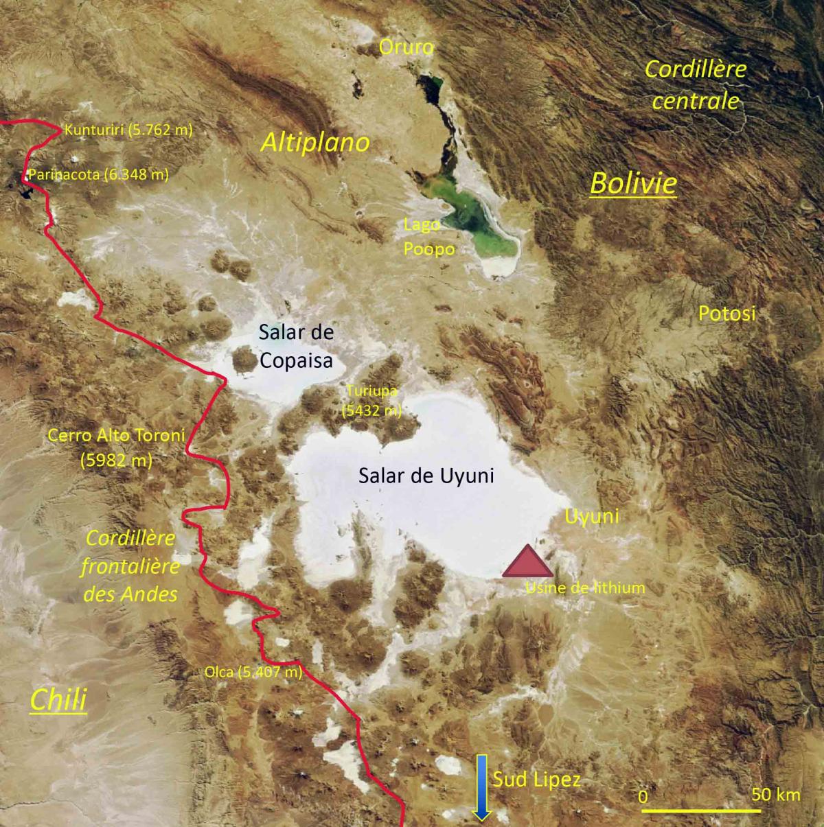 Au cœur de l’Altiplano andin et dans la partie septentrionale du désert d’Atacama s’étend une très vaste cuvette encadrée par de très hautes montagnes qui peuvent atteindre 5.000 à 6.000 m. Particulièrement aride, cet polarise les plus grands salars du monde, comme ceux d'Uyuni et de Coipasa. Très longtemps délaissées, ces marges désertiques se retrouvent aujourd’hui au cœur de nouveaux enjeux miniers mondiaux, du fait des immenses réserves – sans doute 60 % des réserves mondiales – de lithium qu’elles contiennent. Ces salars appartiennent au « triangle du lithium », une vaste région qui s’étend du sud de l’Altiplano bolivien jusqu’au nord du Chili et de l'Argentine. Ce brutal changement de trajectoire lié à l’exploitation d’une nouvelle ressource bouleverse la région qui acquiert en retour un rôle stratégique.