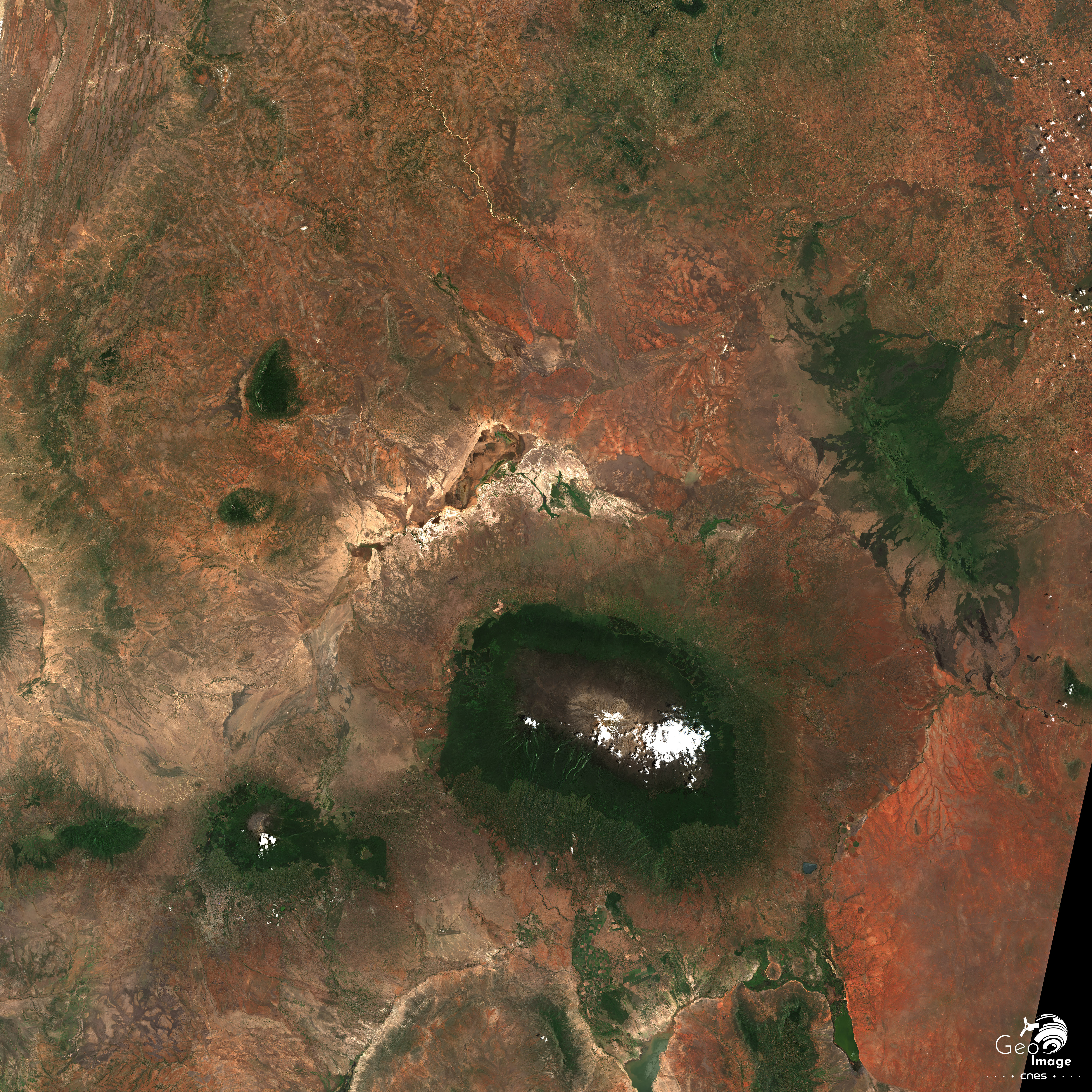 L'image du Kilimanjaro, situé dans le Nord-Est de la Tanzanie, a été pris le 3 février 2019 par le satellite Sentinel-2B. Il s’agit d’une image en couleurs naturelles de résolution à 10m.