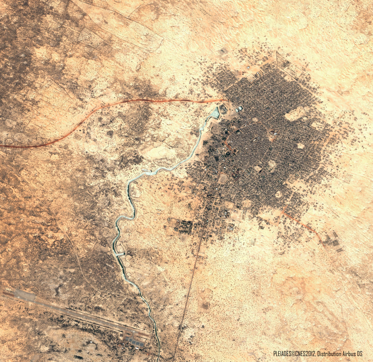 Cette image a été prise par le satellite Pléiades-1A en mars 2012. Il s’agit d’une image en couleurs naturelles, de résolution native à 0,70m, ré-échantillonnée à 0,5m.