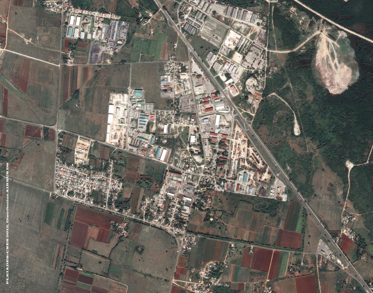 Esta imagen fue tomada por un satélite Pléiades-1A el 13 de diciembre de 2012. Se trata de una imagen con colores naturales, de resolución nativa a 0,70m, calibrada a 0,5m.
