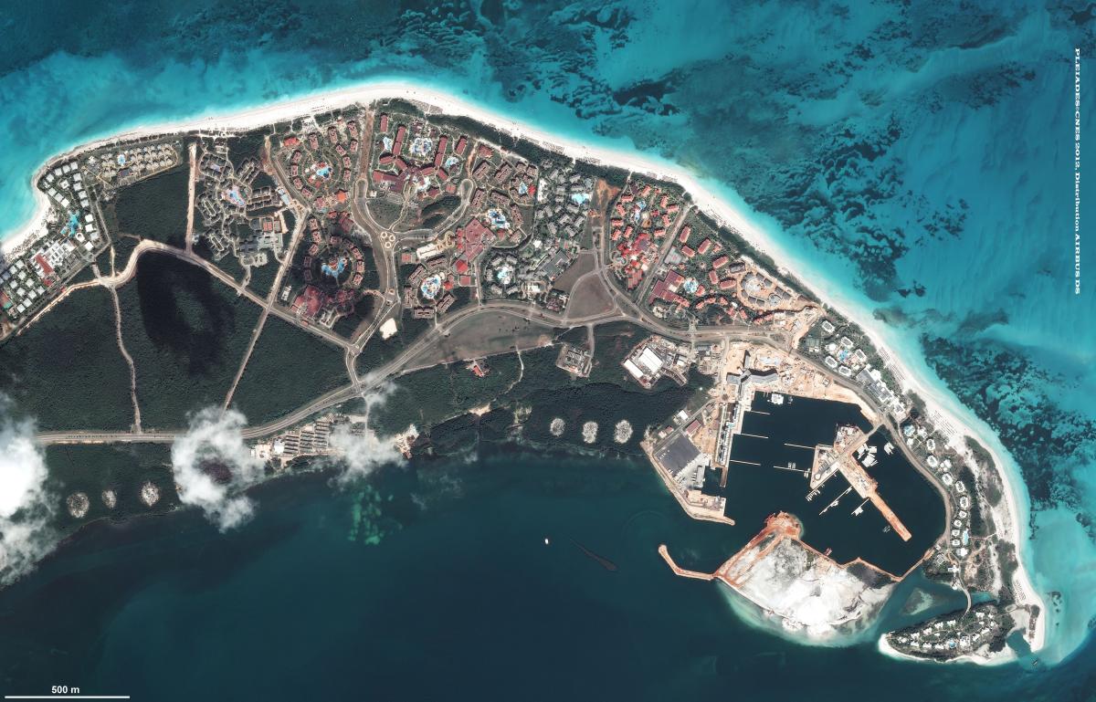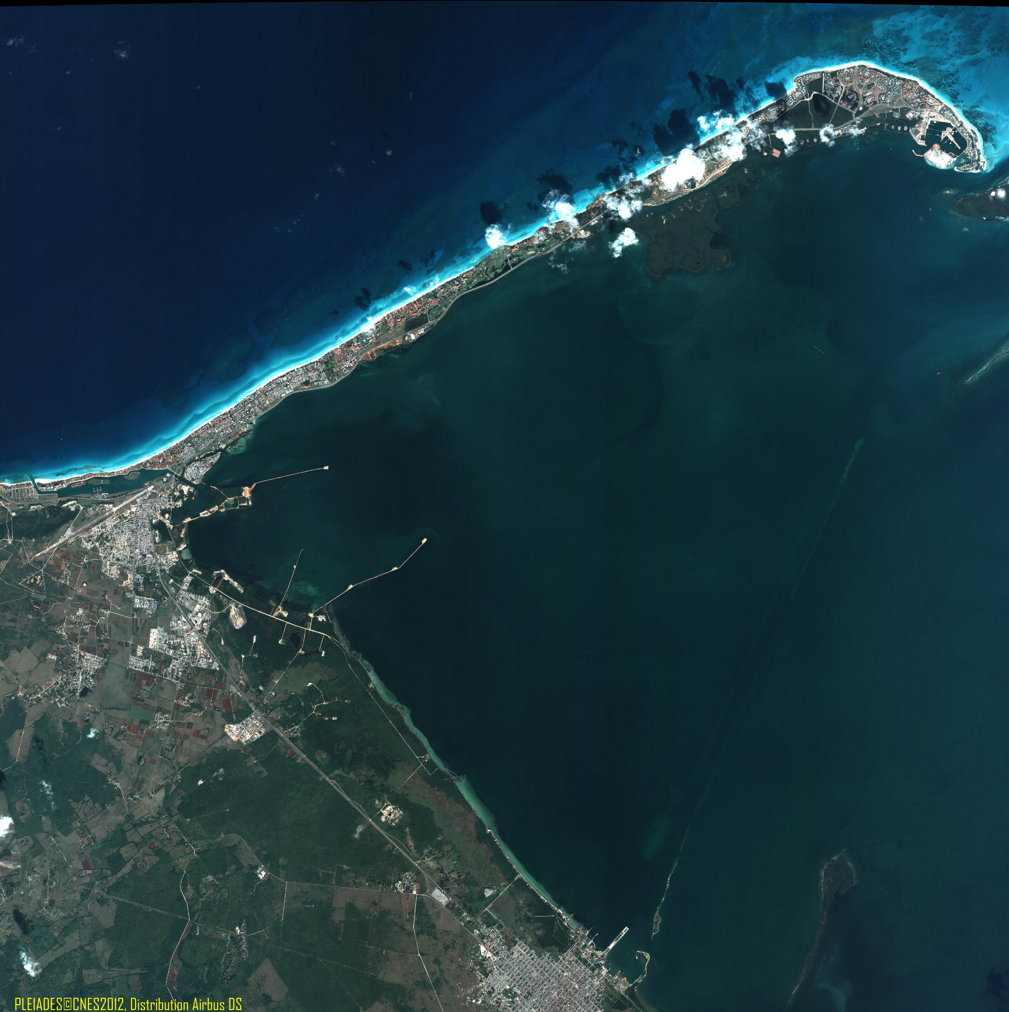 Cette image a été prise par le satellite Pléiades-1A le 13/12/ 2012. Il s’agit d’une image en couleur naturelle, de résolution native à 0,70m, ré-échantillonnée à 0,5m.