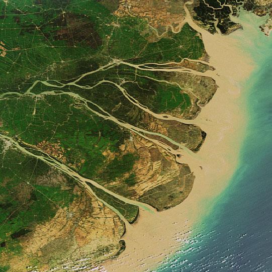 Au total, la région deltaïque couverte par l’image est l’aboutissement d’un bassin versant complexe et de très grande ampleur. Le delta ne peut donc être compris et étudié qu’en le replaçant dans un contexte plus large faisant intervenir à la fois des données spatiales et temporelles. Il est en cela représentatif de nombreux espaces littoraux d’Asie et notamment des autres deltas des grands fleuves comme le Fleuve Rouge, le Gange, le Brahmapoutre ou encore l’Irrawaddy.