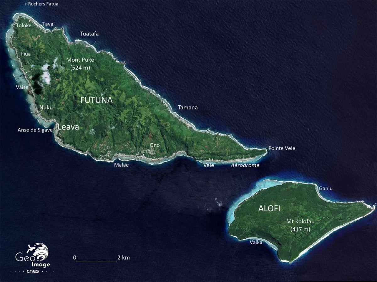 Tête d’épingle située en plein cœur de l’océan Pacifique, séparé de 240 km de Wallis, l’archipel d’Horn, composé de Futuna et Alofi, présente une taille modeste de 64 km² pour une population estimée à 3225 habitants lors du dernier recensement de 2018. L’archipel est un espace insulaire marqué par des contraintes. Tournée vers le Nord-Est, la côte aux vents est très exposée aux cyclones qui peuvent occasionner des dégâts considérables (cf. cyclone Toma en 2010. Le risque sismique est aussi important (cf. séisme du 13 mars 1993). Ces deux iles voisines sont pourtant bien différentes.