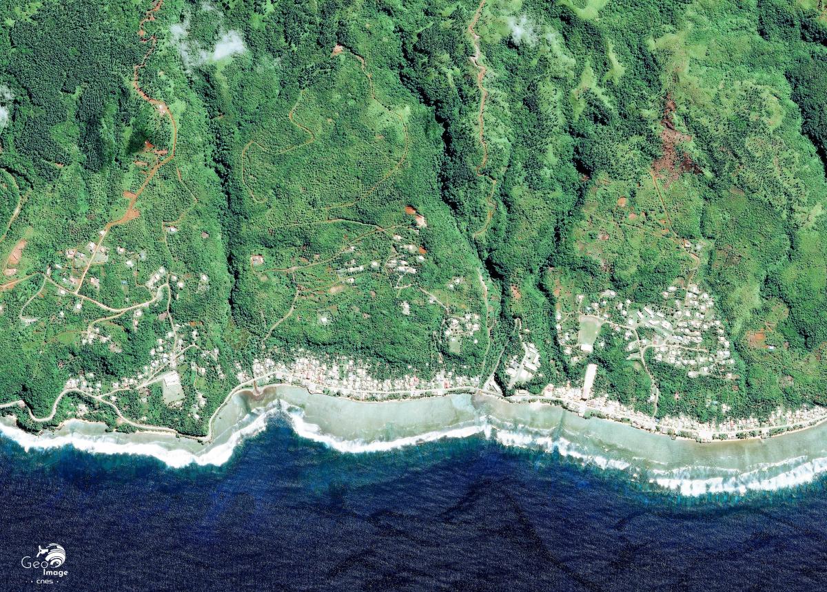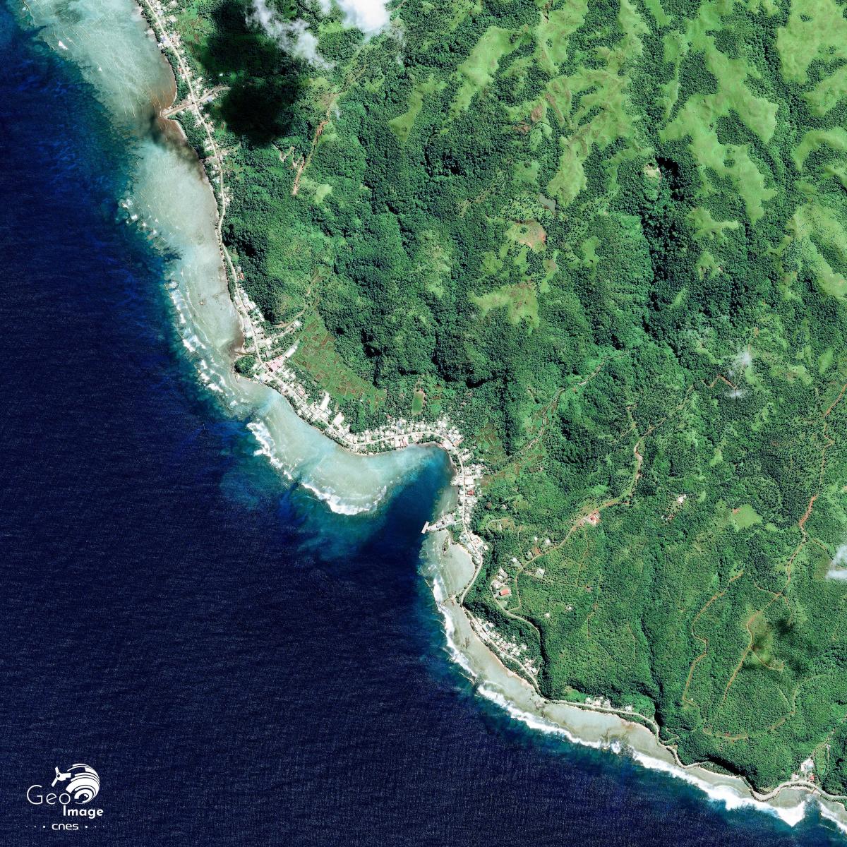 Cette image des îles de Wallis et Futuna, territoires français d'outre-mer dans l'océan Pacifique, a été prise par un satellite Pléiades le 10 avril 2015. Il s’agit d’une image en couleur naturelle, de résolution native à 0,70m, ré-échantillonnée à 0,5m.