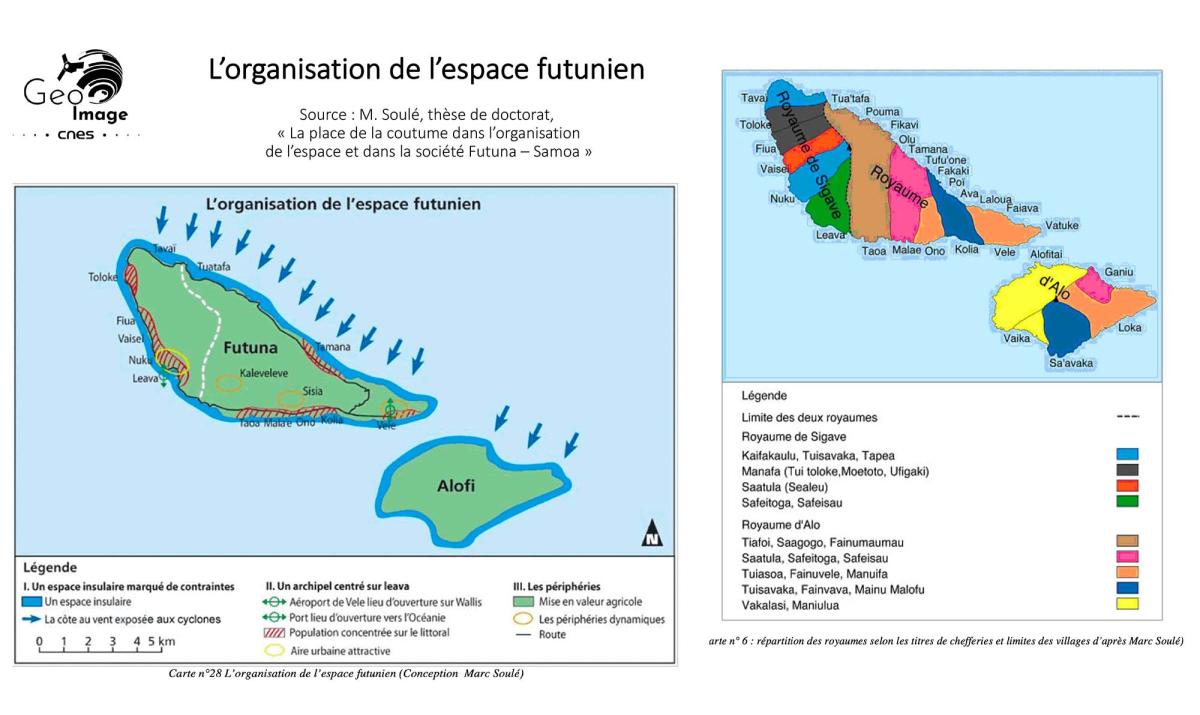Au cœur de l’océan Pacifique au contact des aires mélanésienne et polynésiennes, les îles Horn - composée de Futuna et Alofi - appartiennent à la collectivité d’Outre-Mer de Wallis et Futuna. Située à plus de 16 000 km de la France métropolitaine, elle est comprise entre Tuvalu au nord, les Fidji au sud-ouest et les Samoa à l’est. Ce statut territorial spécifique permet à Futuna le maintien de deux royaumes coutumiers polynésiens aux fortes spécificités. Face à des contraintes fortes (isolement, côte récifale, cyclones, séismes), l’organisation de l’espace juxtapose plusieurs clés de lecture : pôle de Leava/ couronne villageoise, intérieurs/littoraux, Futuna/Alofi non peuplée...