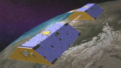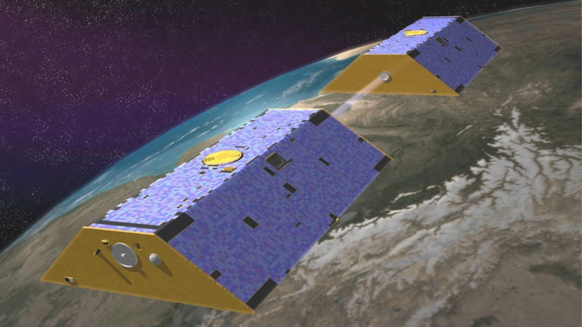 De 2002 à 2017, les 2 satellites de la mission GRACE se sont suivis sur la même orbite autour de 450 km d'altitude. Leurs variations de distance a permis de révéler les variations spatio-temporelles du champ de gravité terrestre. Depuis 2018, les 2 satellites de la mission GRACE-FO poursuivent cet objectf.