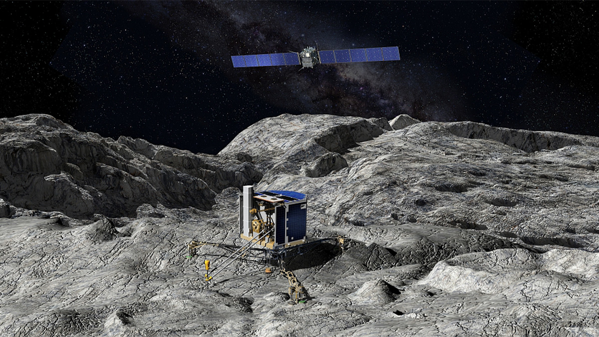 En 2004, la sonde européenne Rosetta a quitté la Terre pour un voyage long de 10 ans. Sa destination ? La comète Churyumov-Gerasimenko, dont elle s’est approchée au cours de l’année 2014. Une fois à proximité de cette dernière, Rosetta a entamé ses observations en juillet 2014. Puis en novembre 2014, la sonde a largué Philae, un atterrisseur qui est venu se poser à la surface de la comète. La mission de Philae a consisté à analyser la comète sous tous ses aspects : composition du sol, propriétés physiques, niveau d’activité…